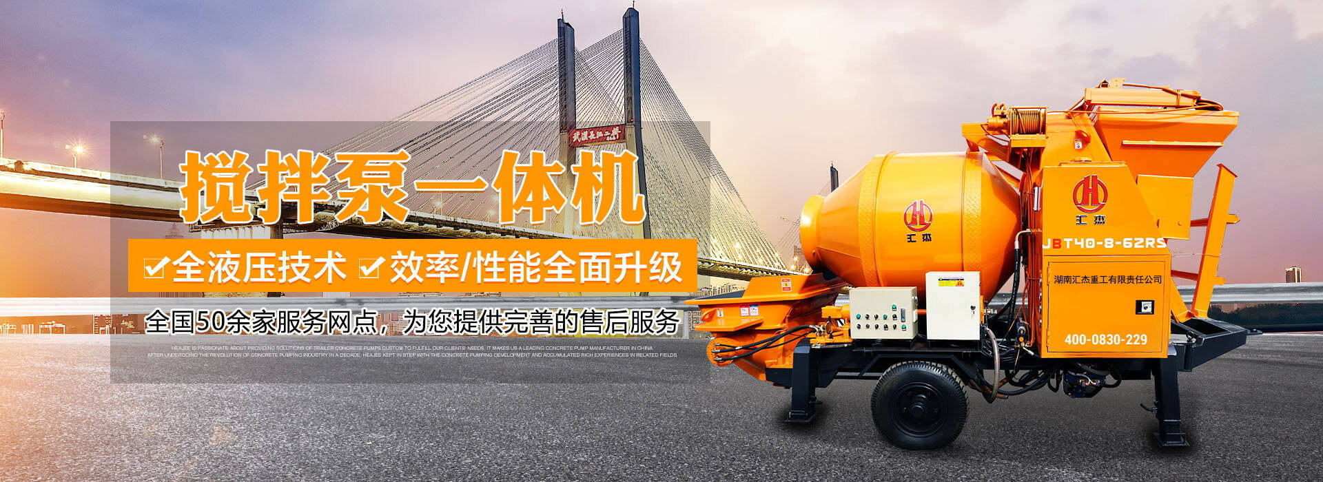 湖南匯杰重工有限責(zé)任公司于1999年成立,是一家專業(yè)研制生產(chǎn)HBT40-90系列拖式混凝土輸送泵、JBT系列攪拌一體泵、HBTSD隧道泵、車載式泵、WDB300-800系列穩(wěn)定土拌合站、HZS50-180混凝土攪拌站。